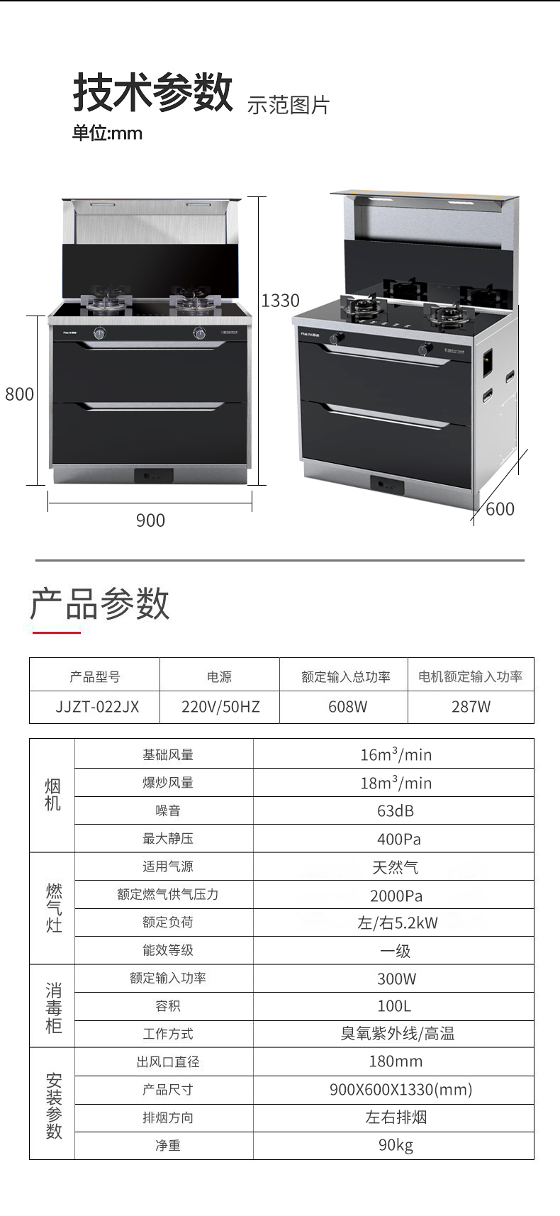 一級能效 消毒柜為一體集成灶