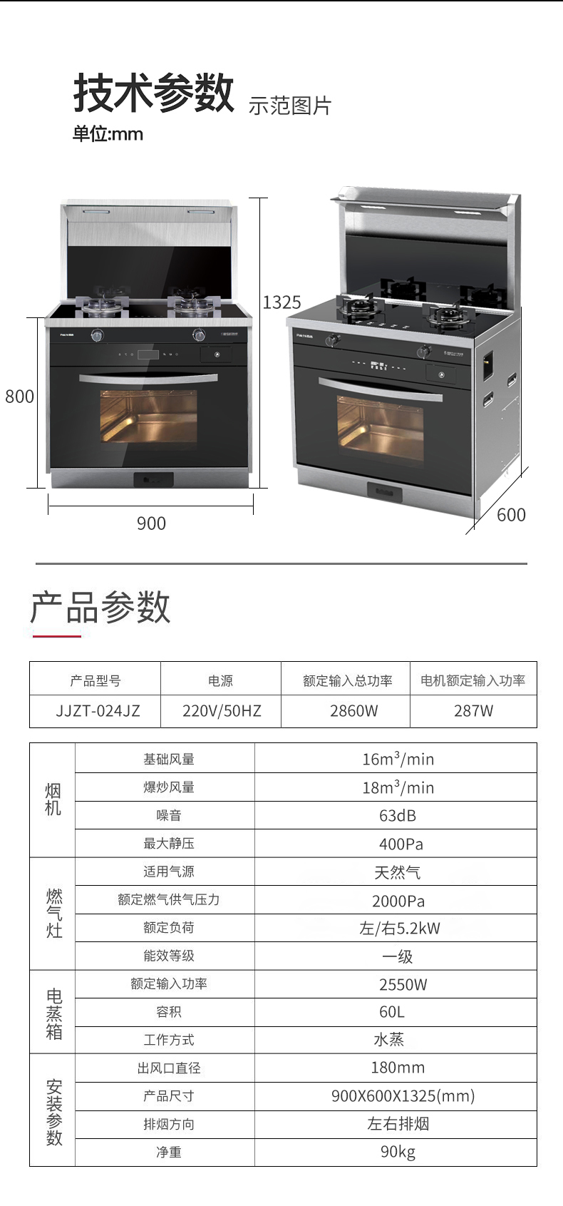 一級能效 電蒸箱為一體集成灶